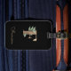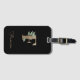 Eleganter schwarzer Gepäckanhänger mit einem goldenen botanischen Monogramm in der Mitte.