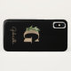 Das elegante schwarze Handy verfügt über ein goldenes botanisches Monogramm in der Mitte.