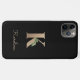 Das elegante schwarze Handy verfügt über ein goldenes botanisches Monogramm in der Mitte.
