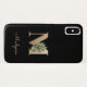 Das elegante schwarze Handy verfügt über ein goldenes botanisches Monogramm in der Mitte.