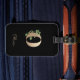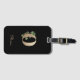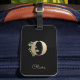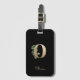 Eleganter schwarzer Gepäckanhänger mit einem goldenen botanischen Monogramm in der Mitte.