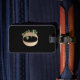 Eleganter schwarzer Schlüsselanhänger mit einem goldenen botanischen Monogramm in der Mitte.