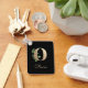 Eleganter schwarzer Schlüsselanhänger mit einem goldenen botanischen Monogramm in der Mitte.
