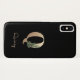 Das elegante schwarze Handy verfügt über ein goldenes botanisches Monogramm in der Mitte.