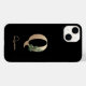 Das elegante schwarze Handy verfügt über ein goldenes botanisches Monogramm in der Mitte.