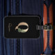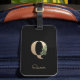 Eleganter schwarzer Gepäckanhänger mit einem goldenen botanischen Monogramm in der Mitte.