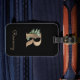 Eleganter schwarzer Gepäckanhänger mit einem goldenen botanischen Monogramm in der Mitte.