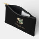 Der elegante schwarze Toilettenbeutel mit einem goldenen botanischen Monogramm vorne.