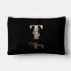 Der elegante schwarze Toilettenbeutel mit einem goldenen botanischen Monogramm vorne.