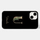 Das elegante schwarze Handy verfügt über ein goldenes botanisches Monogramm in der Mitte.