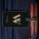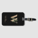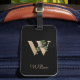 Eleganter schwarzer Gepäckanhänger mit einem goldenen botanischen Monogramm in der Mitte.