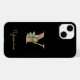 Das elegante schwarze Handy verfügt über ein goldenes botanisches Monogramm in der Mitte.