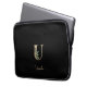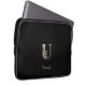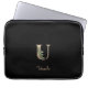 Der elegante schwarze Laptop-Ärmel weist in der Mitte ein goldenes botanisches Monogramm auf.