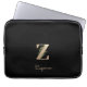 Der elegante schwarze Laptop-Ärmel weist in der Mitte ein goldenes botanisches Monogramm auf.