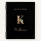 Elegantes schwarzes Notebook mit einem goldenen botanischen Monogramm in der Mitte.