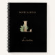 Elegantes schwarzes Notebook mit einem goldenen botanischen Monogramm in der Mitte.