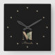 Eleganter Botanischer Monogramm-Brief M Quadratische Wanduhr
