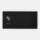 Die elegante schwarze Schreibtischmatte verfügt über ein goldenes botanisches Monogramm in der Mitte.