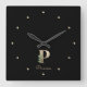 Eleganter Botanischer Monogramm-Brief P Quadratische Wanduhr