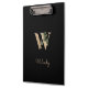 Die elegante schwarze Zwischenablage verfügt über ein goldenes botanisches Monogramm in der Mitte.