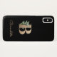 Das elegante schwarze Handy verfügt über ein goldenes botanisches Monogramm in der Mitte.