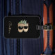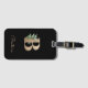 Eleganter schwarzer Gepäckanhänger mit einem goldenen botanischen Monogramm in der Mitte.