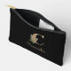 Der elegante schwarze Toilettenbeutel mit einem goldenen botanischen Monogramm vorne.