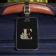 Eleganter schwarzer Schlüsselanhänger mit einem goldenen botanischen Monogramm in der Mitte.