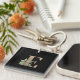 Eleganter schwarzer Schlüsselanhänger mit einem goldgelben botanischen Monogramm mit Hauptstadt E Buchstabe in der Mitte.