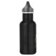 Elegante schwarze Wasserflasche mit goldenem botanischem Monogramm in der Mitte.
