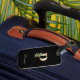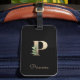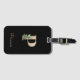 Eleganter schwarzer Gepäckanhänger mit einem goldenen botanischen Monogramm in der Mitte.