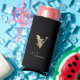 Elegante schwarze Dose kühler mit einem goldenen botanischen Monogramm in der Mitte.
