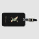 Eleganter schwarzer Gepäckanhänger mit einem goldenen botanischen Monogramm in der Mitte.