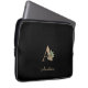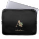 Der elegante schwarze Laptop-Ärmel weist in der Mitte ein goldenes botanisches Monogramm auf.