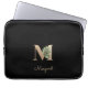 Der elegante schwarze Laptop-Ärmel weist in der Mitte ein goldenes botanisches Monogramm auf.