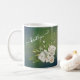 Gute Morgenstunden mit herrlichem Blumentee oder Kaffee-Tasse. Gib jemand Besonderem eine auf Bestellung angefertigte Tasse, oder verwöhne dich selbst mit einem Design, dass dir Freude bereitet oder dich zum Lachen bringt. In einem atemberaubenden grünen Hintergrund mit Aquarellfarben weiße Blume und ihren Namen im Skript. Wenn Sie Fragen zum Design haben, schicken Sie einfach einen Chat und wir freuen uns, Ihnen zu helfen.