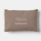 Elegante Bridesmaid Taupe Zubehör Pouch, bitte personalisieren Sie den Namen der Brautjungfrau, mit der Online-Personalisierung Vorlage vor der Bestellung. Die Personalisierungsvorlage kann auch leicht verwendet werden, um das Design für andere Hochzeitsgast-Rollen, z. B. Trauzeugin, zu personalisieren, indem der entsprechende Text vor dem Hinzufügen zum Warenkorb entsprechend geändert wird. Wenn Sie die Schriftart-Größe für einen der Texte ändern möchten, klicken Sie bitte auf "Bearbeiten mit dem Entwurfswerkzeug", um vor der Bestellung "weiter anpassen".