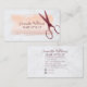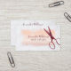 Dieses elegante Design mit einem goldenen Pinselstrich aus metallischer Rose über eine Marmoroberfläche. Hinter diesem ist eine Vintage Schere mit einem rot-rosa Overlay. Elegantes Skript komplett diese Vorlage und ist leicht zu personalisieren.