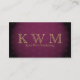 Dieser elegante Visitenkarteentwurf hat einen Burgunder-Hintergrund mit einem subtilen Diamantmuster in einer helleren Farbe. In der Mitte sind Ihre Geschäftsinitialen oder Ihr Monogramm in einem ins Auge fallenden Gold mit Ihrem Namen oder Handelsnamen gerade unterhalb er. Die Rückseite hat einen schwarzen Hintergrund mit Ihren Kontaktinformationen im Gold. Vervollkommnen Sie für jedes mögliches Geschäft aber besonders groß für alternatives heathcare und verzieren, Chiropraktikdienstleistungen, Massagetherapie, Nagelsalon, Wellness-Center, Schmuck, Cosmetologist, Mode, Schönheitsberater, persönlicher Trainer oder, immer wenn Sie eine elegante Touch möchten. Addieren Sie Ihre Informationen und es ist bereit zu gehen!