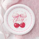Mit diesen eleganten Cherry-Tellern servieren Sie süße Leckereien im Stil. Sie sind mit glänzenden Aquarellkirschen und einem zarten, rosa Bogen geschmückt und verleihen jedem Brautparty Chic Charme und Coquette Eleganz.