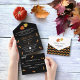 Diese elegante Hochzeit im Herbst lädt zu einer modernen Herbsthochzeit ein. Die schlichte Gestaltung ist mit Blätter aus Ahorn und eleganter Orange-Typografie auf schwarzem Hintergrund gestaltet.