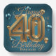 Eleganter Chic Luxurious Blue und Gold 40. Geburts Pappteller