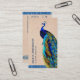 Elegante Pfau-Business-Karte mit einem schönen Pfau mit lebhaften Federn und moderner Typografie auf einem rustikalen Einbruchboden. Fügen Sie Ihren Namen und Ihre Kontaktdaten hinzu, um einen bleibenden ersten Eindruck zu machen.