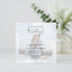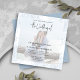 Dieses Design besticht durch eine elegante, schicke und elegante moderne minimalistische, staubblaue, schlichte Kalligraphie-Schrift, boho-bhemian, eine Formgebung, mit einem formalen Blumenmuster, Foto-Overlay und uAwg mit Hochzeitsdetails. QR-Code