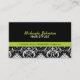 Limone grüne und schwarze stilvolle Geschäftskarten für irgendeine Art Geschäft. Aufmachung eines Schwarzweiss-Damastmusters mit Limonen grünen Akzenten.