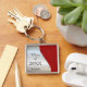 Das Merkmal dieser eleganten Keepake Graduate Key-Kette ist ein glänzender, halb silber und halb hellroter Hintergrund, der durch eine dünne silberne Imitat chrome Diagonallinie getrennt wird. Ihr benutzerdefinierter Text, einschließlich des entsprechenden Jahrs und des Namens Ihres Absolventen, ist auf dem unteren Teil der Silberhälfte dunkelgrau. Ein wunderschöner Sake für den Absolvent der Highschool oder der Uni.