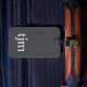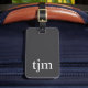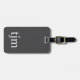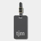 Elegantes, vollständig anpassbares Gepäckanhänger-Design mit dunkelgrauem Hintergrund, weißes, feines Monogramm. Fügen Sie Ihren QR-Code mit Ihren Kontaktdaten hinzu. Sofort zugängliche Kontaktdaten: Ihre Tasche kennt immer den Weg zurück:)