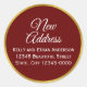 Eleganter dunkelroter Goldname und neue Adresse Runder Aufkleber