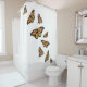 Schöne Monarchen-Schmetterlinge, die über den Duschvorhang fallen