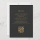 Die elegante, moderne Hochzeitseinladung zeichnet sich durch einen smaragdgrünen Aquarellrand aus, der mit goldenen Imitaten und Glitzer bestickt ist. Der anpassbare Text kombiniert goldfarbene Serifen, Copperplate und kursiv Schriftart auf einem schwarzen Tonschiefer. Die Rückseite bietet Platz für Hochzeitsdetails auf einem soliden schwarzen Hintergrund, zusammen mit einem QR-Code können Gäste scannen, um Ihre Website und UAWG, die die Kosten für den Druck und Versand separater RSVP-Karten rette.